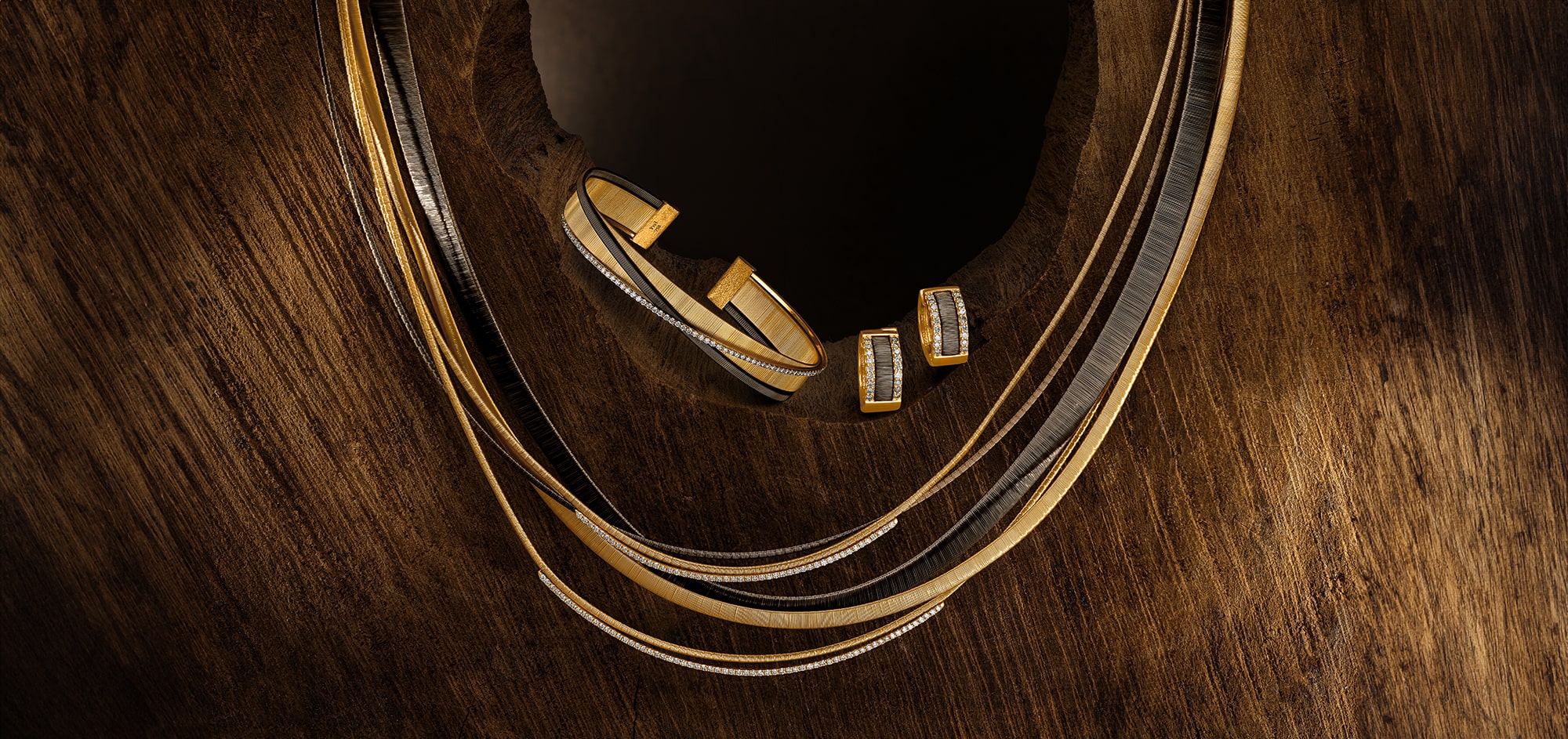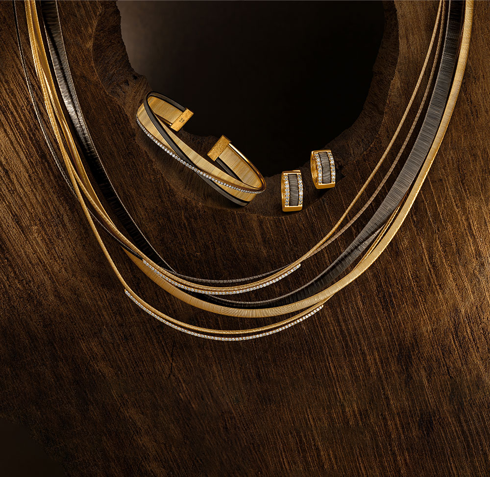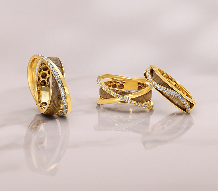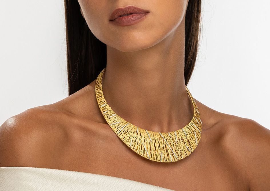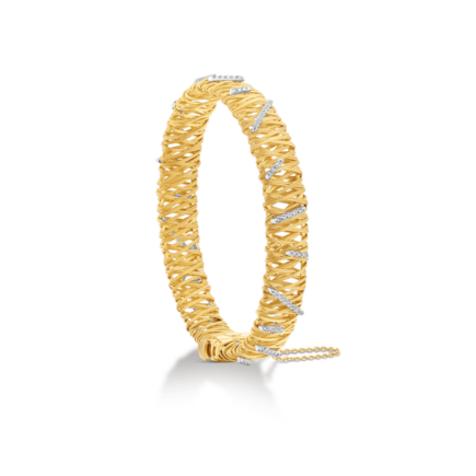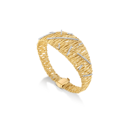Intricately woven gold threads echo the art of traditional Ethiopian basketry, with each piece enhanced by diamonds, capturing a rich cultural heritage and detailed craftsmanship.