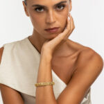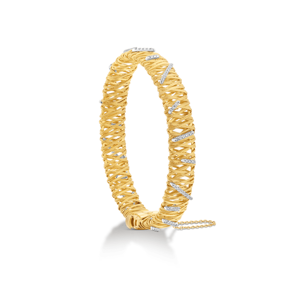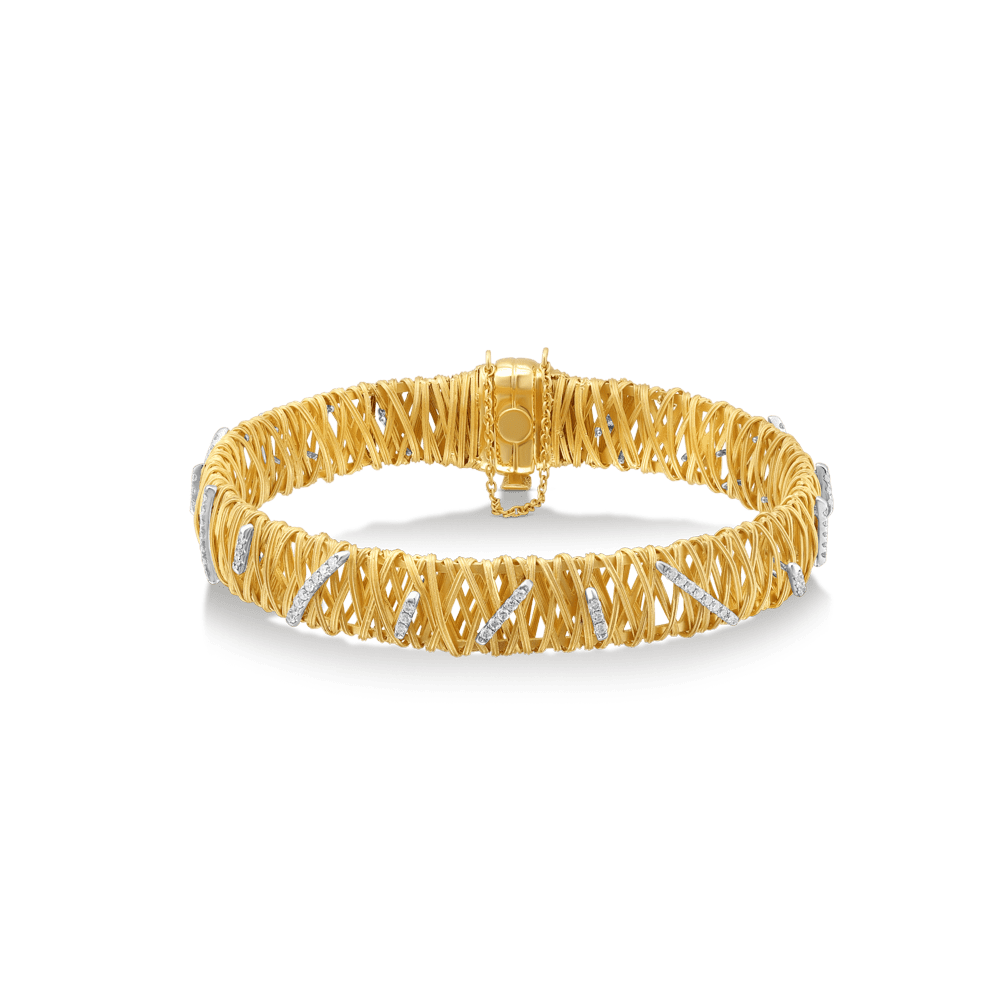 This Golden Weave Diamond Bracelet from the Ethiopia Collection by Yvel is a celebration of the fusion between traditional artisanship and modern opulence. The bracelet’s intricate 18K yellow gold weave is interspersed with 0.59 ct. of natural white diamonds, creating a piece that sparkles with the narrative of Ethiopian culture.