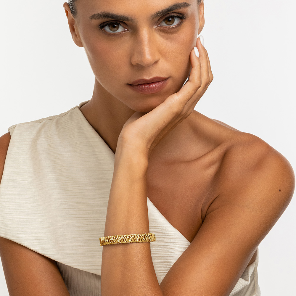 - Expertly woven 18K yellow gold reflects Ethiopian basket weaving techniques