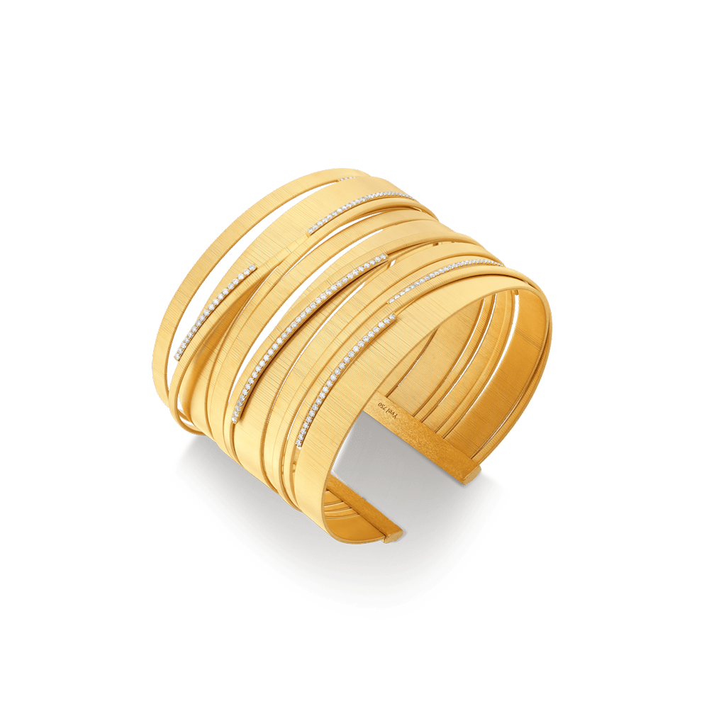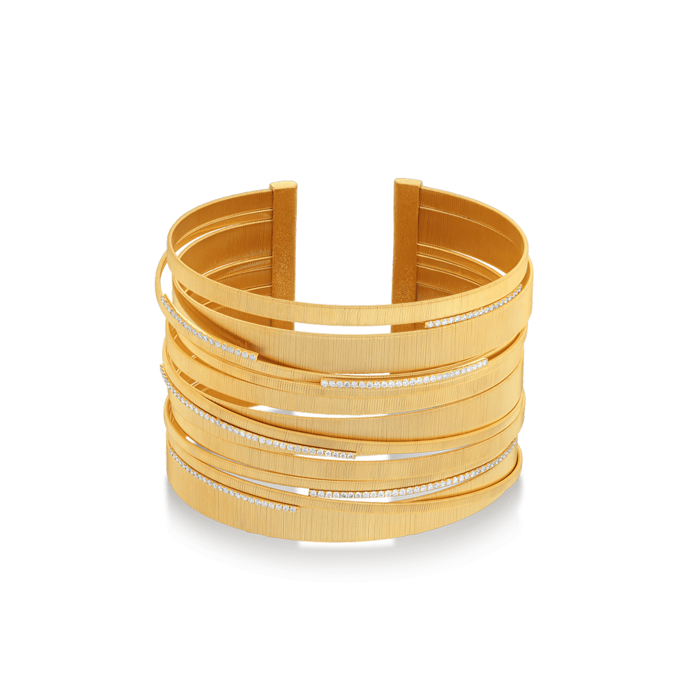 The Ethiopia Collection’s Diamond Bracelet is an ode to the intricate beauty of Ethiopian weaving. Crafted in 18K yellow gold, this bracelet features layers of textured bands, each inlaid with 1.06 ct. of natural white diamonds that sparkle with the essence of purity and grace. Yvel’s Ethiopia Collection celebrates the fusion of ancient techniques with modern sophistication, and this bracelet is a testament to that legacy, offering a bold yet refined statement.