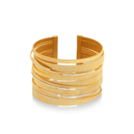 - Multiple bands of satin-finished 18K yellow gold reflect traditional Ethiopian textile art