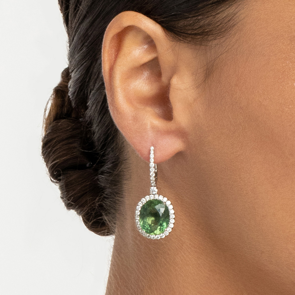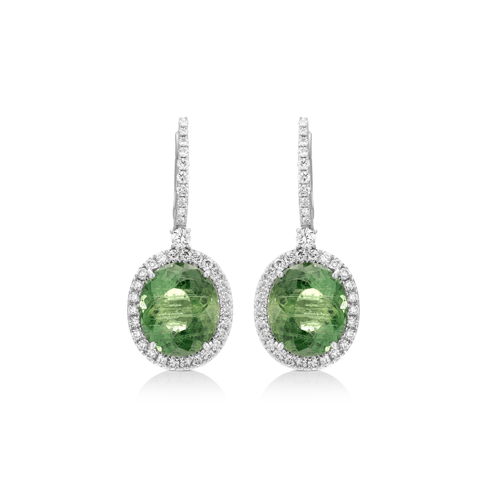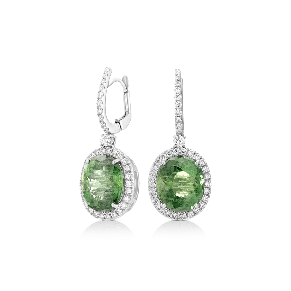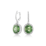 The Apatite Halo Earrings are a celebration of nature’s lush palette, featuring 32.7 ct of enchanting green and blue apatite. Framed by 1.77 ct of natural white diamonds, these 18K white gold earrings echo the colors of a verdant forest and deep ocean vistas, offering an opulent escape into the wonders of the natural world.