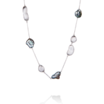 - The pearls are set along a sleek satin finish white gold chain, providing a modern twist to the classic station necklace style