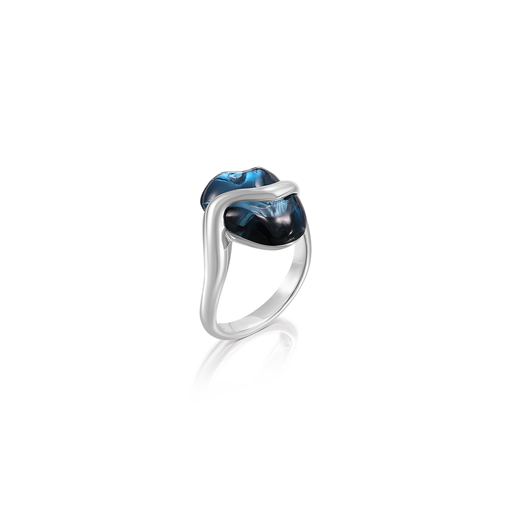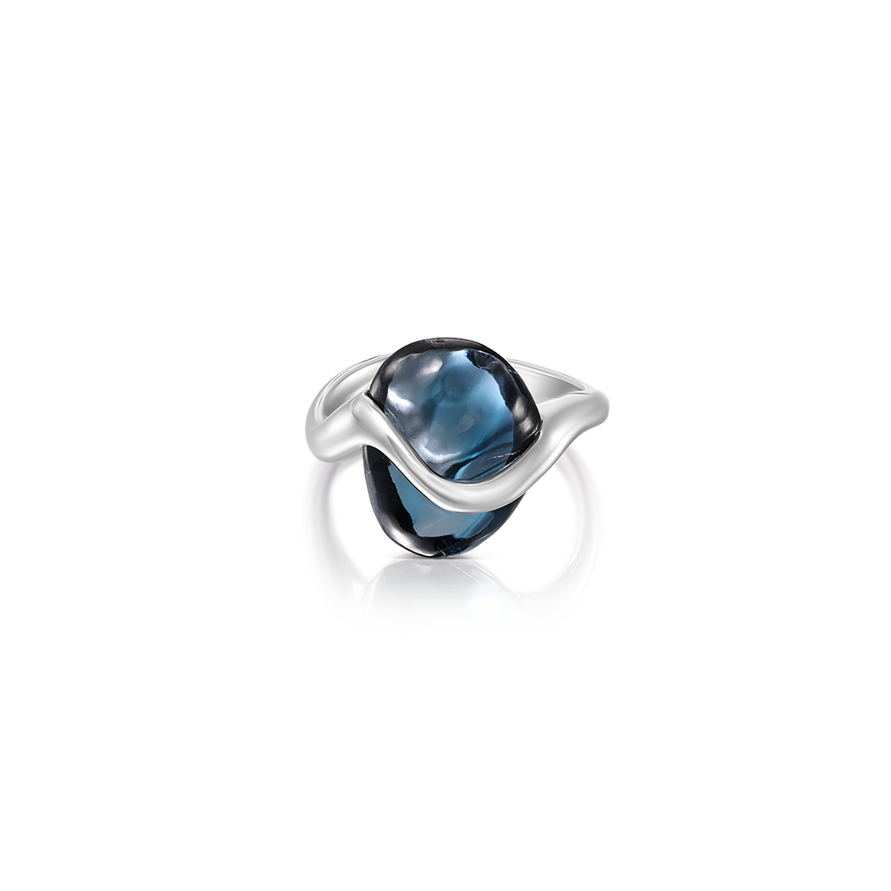 Dive into the depths of the Candy Collection with this stunning ring, featuring a 9.50 ct London Blue Topaz, set in lustrous 18K white gold. This piece beautifully captures the essence of a treasured candy, with the topaz’s deep blue hues reminiscent of the mysterious and enchanting depths of the ocean. The unique, fluid design of the ring mimics the swirling movement of water, enveloping the gem in a graceful embrace that highlights its striking color and brilliance.