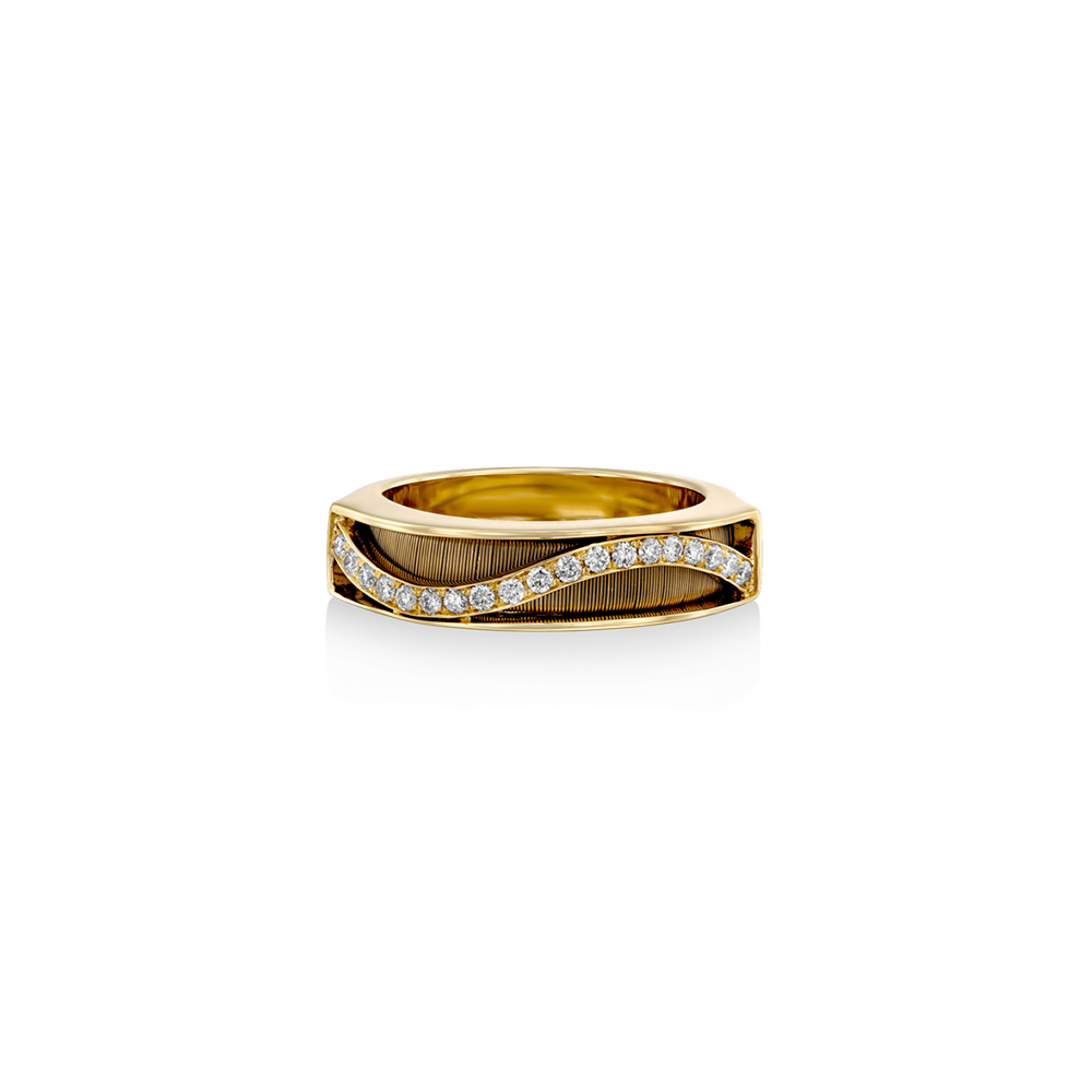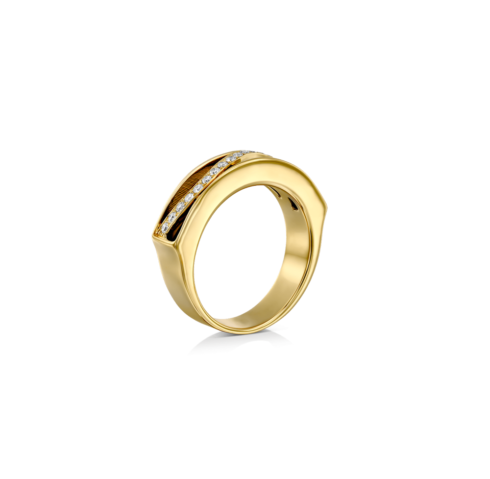 Encapsulating the warm hues of dusk, this ring is a celebration of Ethiopian artisanship set against the backdrop of twilight. This exquisite piece, rendered in the finest 18K yellow and brown gold, reflects the subtle interplay of light and shadow. With 0.19 ct. of natural diamonds that capture the last glimmers of daylight, the ring’s design is a tribute to the traditional Ethiopian narrative, reimagined through the lens of modern elegance.